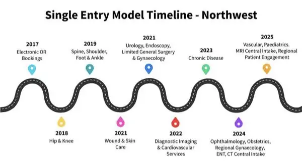 Since 2018, care pathways have been developed for orthopedics, spine, urology, endoscopy, wound care, ENT, and gynecology, helping to alleviate emergency department pressures and improve access to community-based care. Each expansion has been built upon the successful digital infrastructure and processes established in previous years’ initiatives.